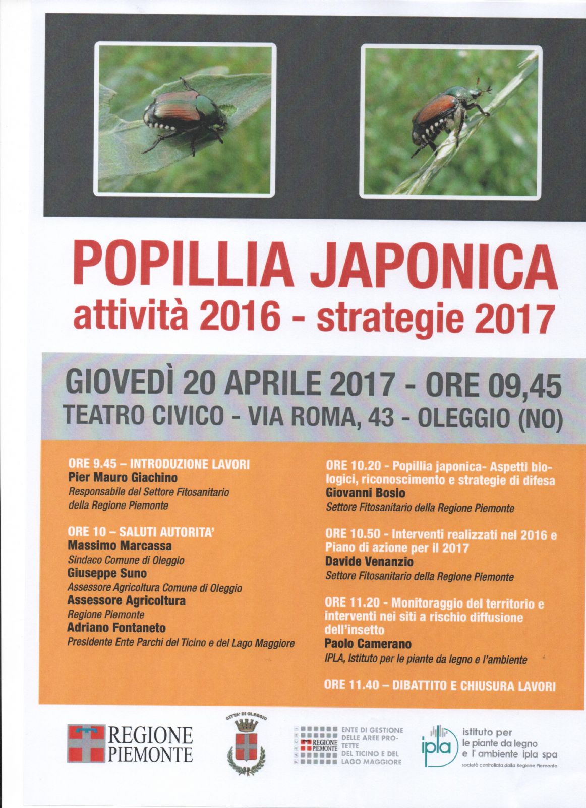 E' questo un incontro tecnico sull'emergenza Popillia japonica rivolto agli agricoltori, ai tecnici, agli amministratori e alla popolazione al ifne di illustrare - le attiività svolte per il contenimento della Popillia japonica nel 2016 - i risultati raggiunti - le attività previste per il 2017.