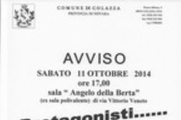 Sabato 11 ottobre 2014 alle ore 17,00 presso la sala comunale "cav. Angelo della Berta" di via Vittorio Veneto (ex sala polivalente) il Sindaco e l'Amministrazione comunale propongono un'assemblea...
