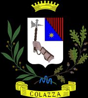 Ai lati dello scudo si dipartono dal basso due rami legati da una cordicella azzurra, verso sinistra un ramo di alloro, verso destra un ramo di quercia; sopra la cima dello scudo una corona dorata e ai piedi dei rami legati un cartiglio con la scritta COLAZZA.