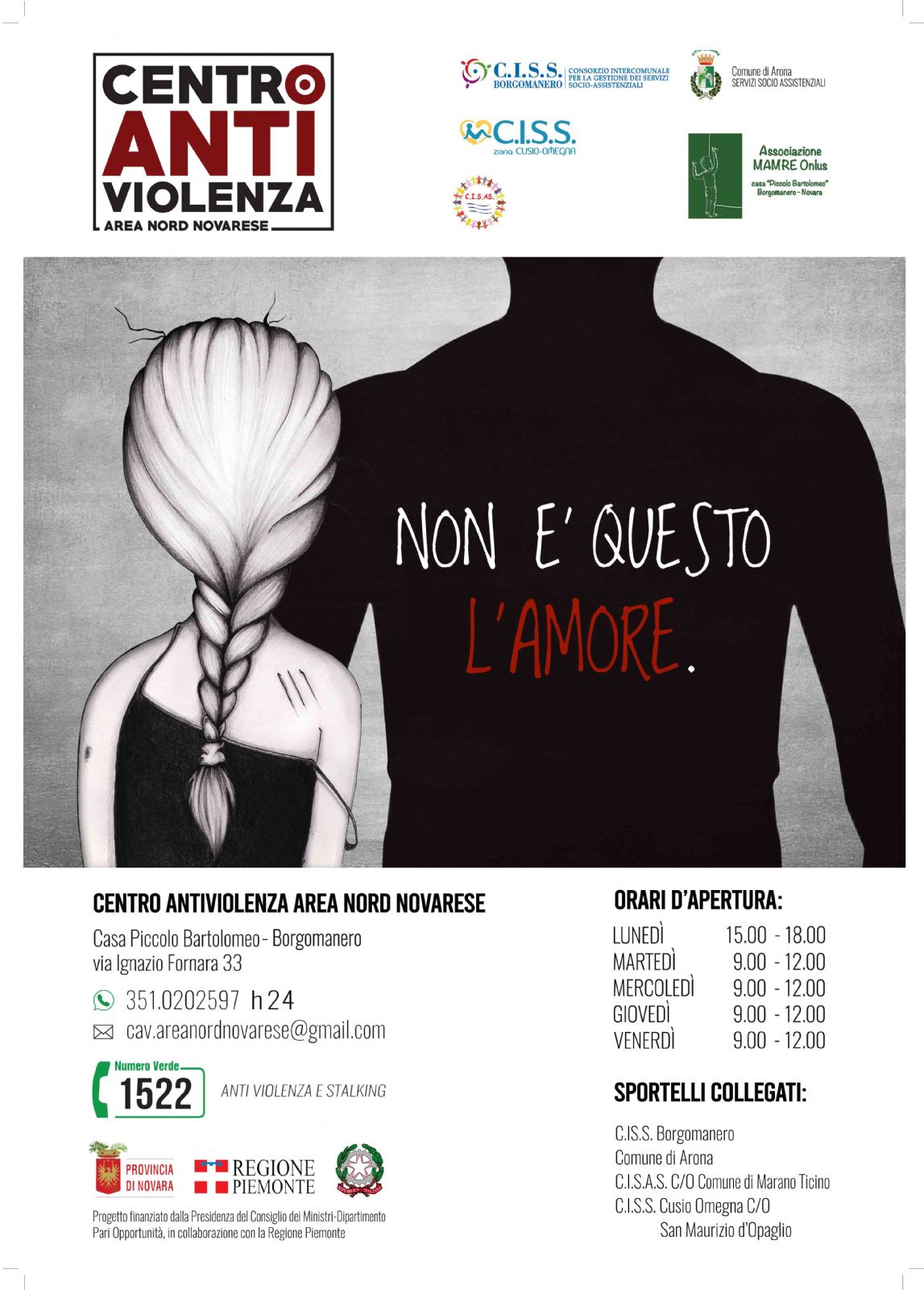 Si pubblica la locandina inviata dal Centro Antiviolenza di Borgomanero, servizio presente sul territorio a difesa e supporto delle donne vittime di violenza 24h su 24.